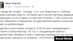 В отношении матери семерых детей Светланы Давыдовой прекращено уголовное дело, сообщил ее адвокат Иван Павлов в своем Facebook. С россиянки сняты обвинения в госизмене, а также дано право на реабилитацию, уточнил он.