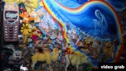"Это вот икона: технократический и биологический мир. Я сделал икону нашего XXI века из... крышки унитаза. Мы же молимся сейчас через задницу. Раньше строили храмы, а теперь на всей планете мы не храм построили, а рынок построили, базар".