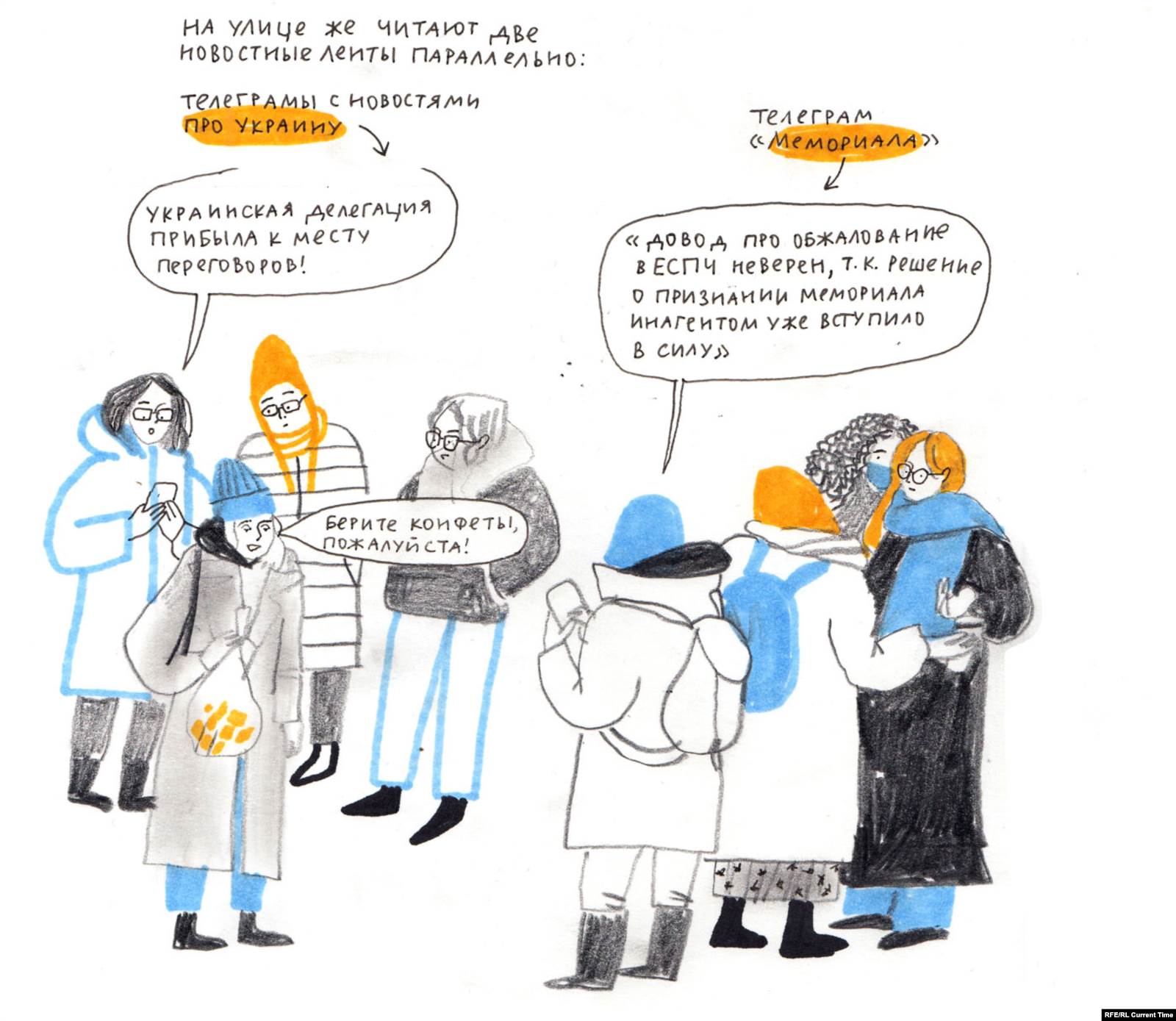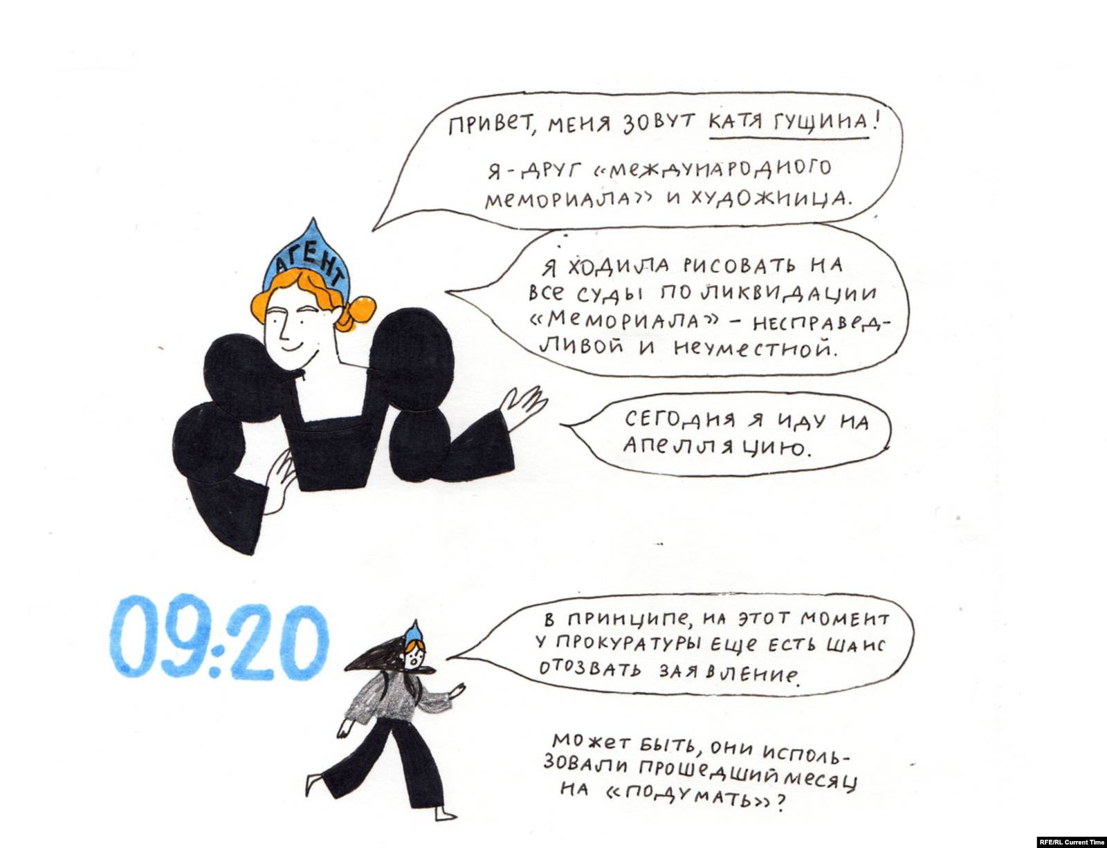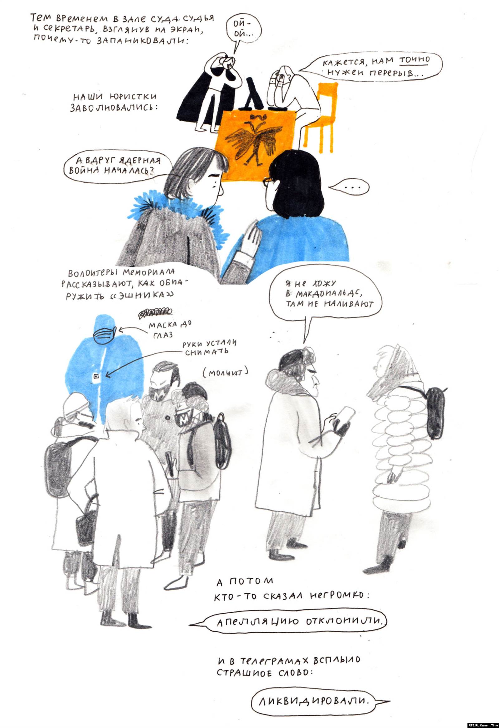 "А потом кто-то сказал негромко: "Апелляцию отклонили". Комикс-репортаж Кати Гущиной о ликвидации "Мемориала"